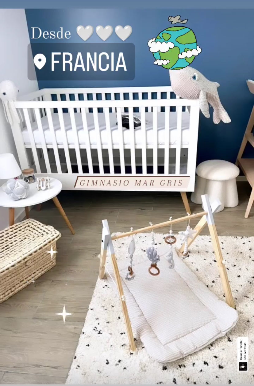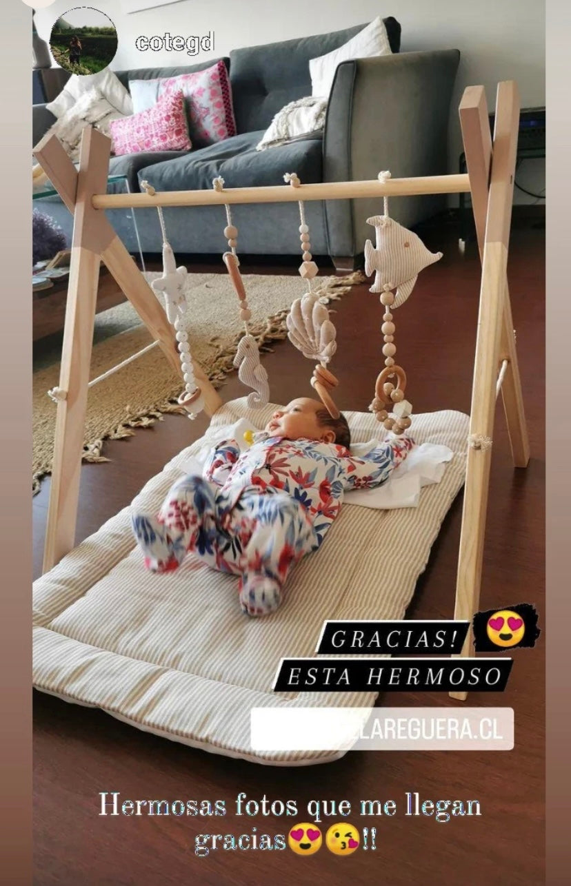 FULL SET GYM: Estructura de 5 piezas + Set de 4 móviles + Play Mat Conchita Nude + Bolso Zig Zag Beige