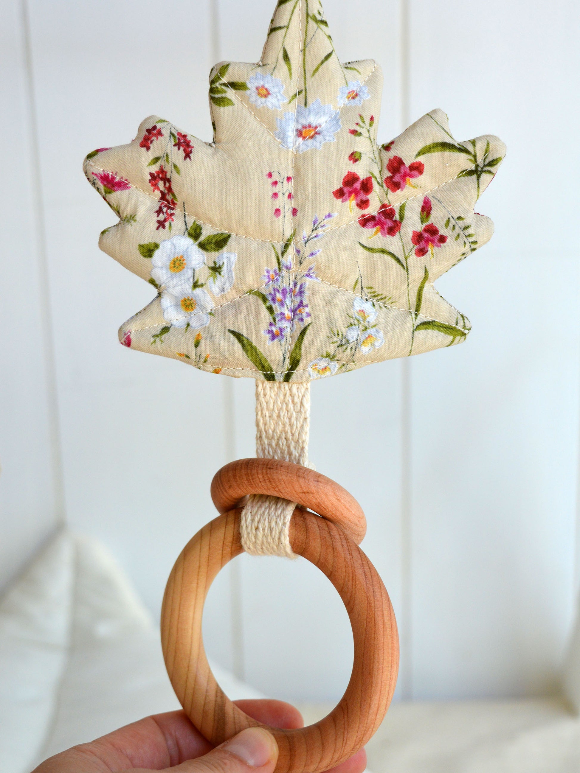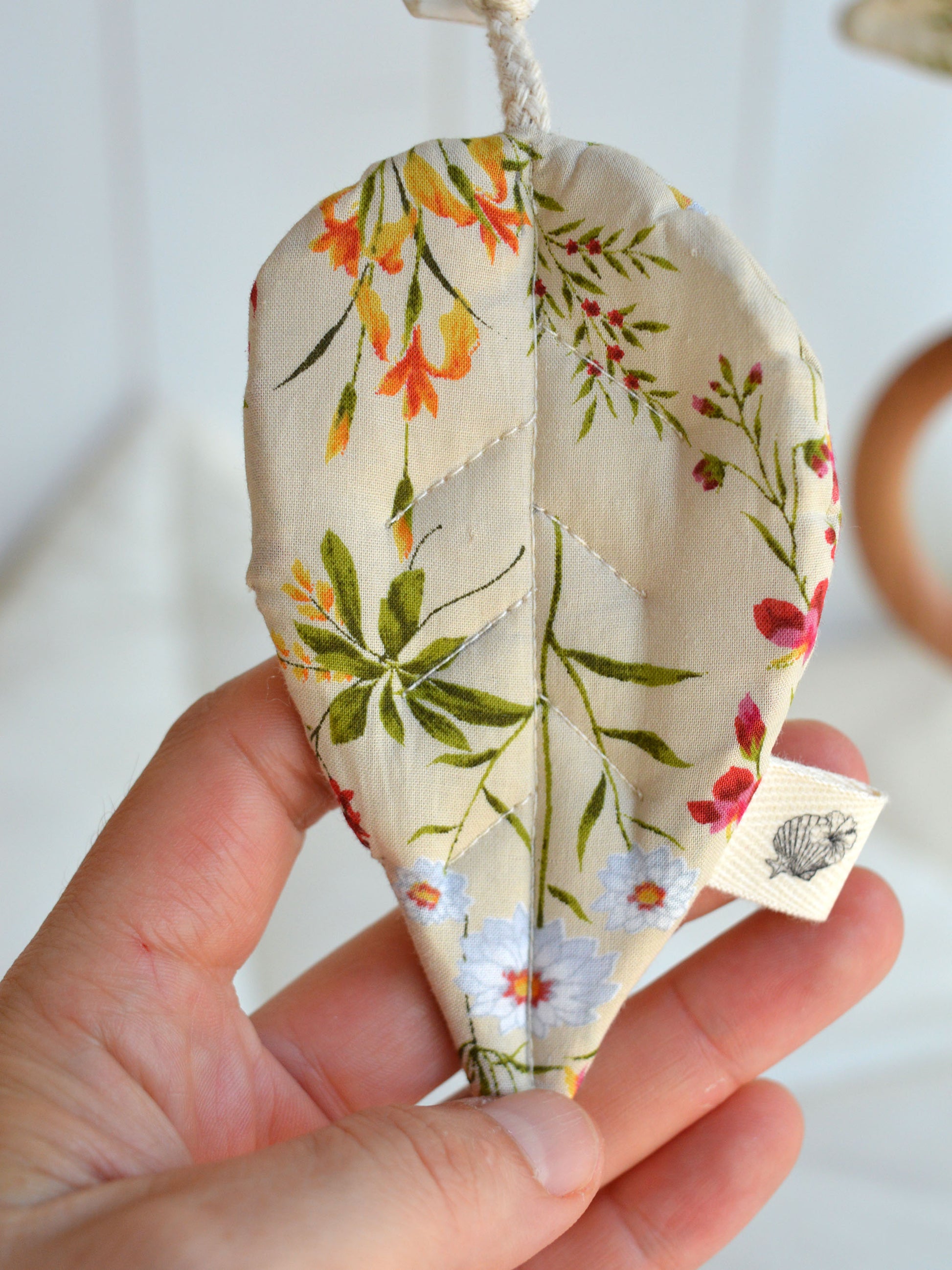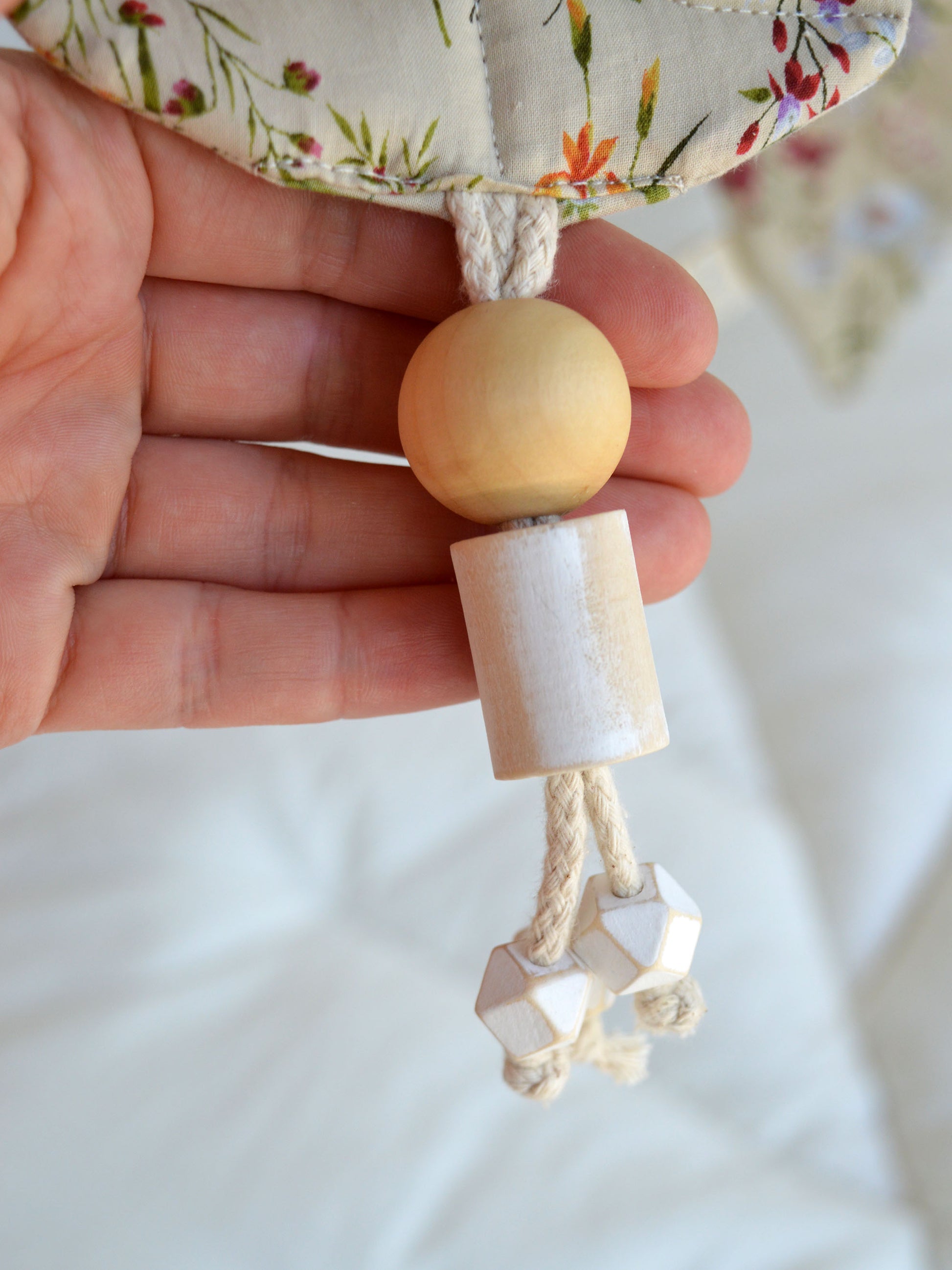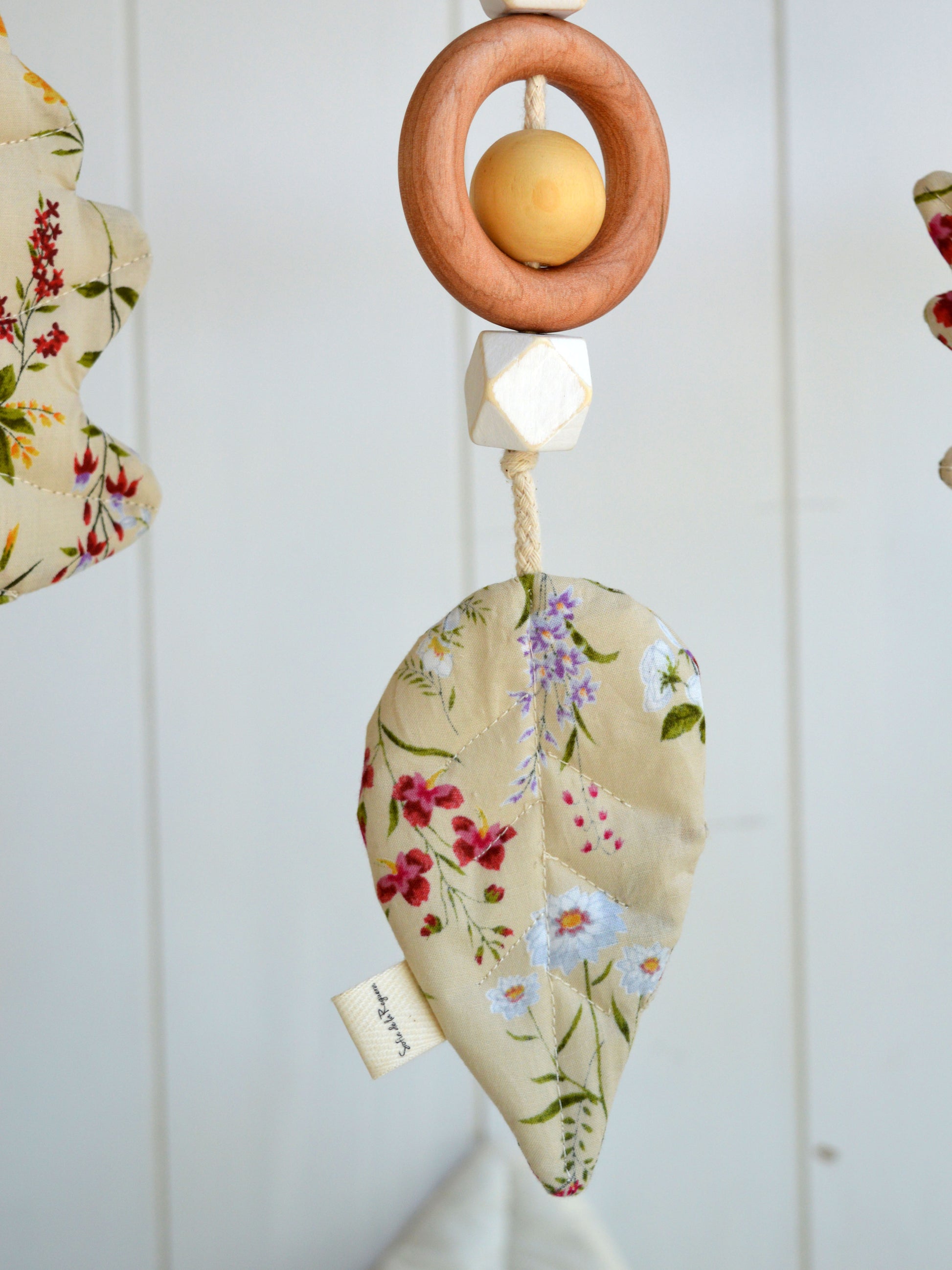 🌼 Set de móviles sonajeros de madera & algodón japonés (con hojitas crujientes)