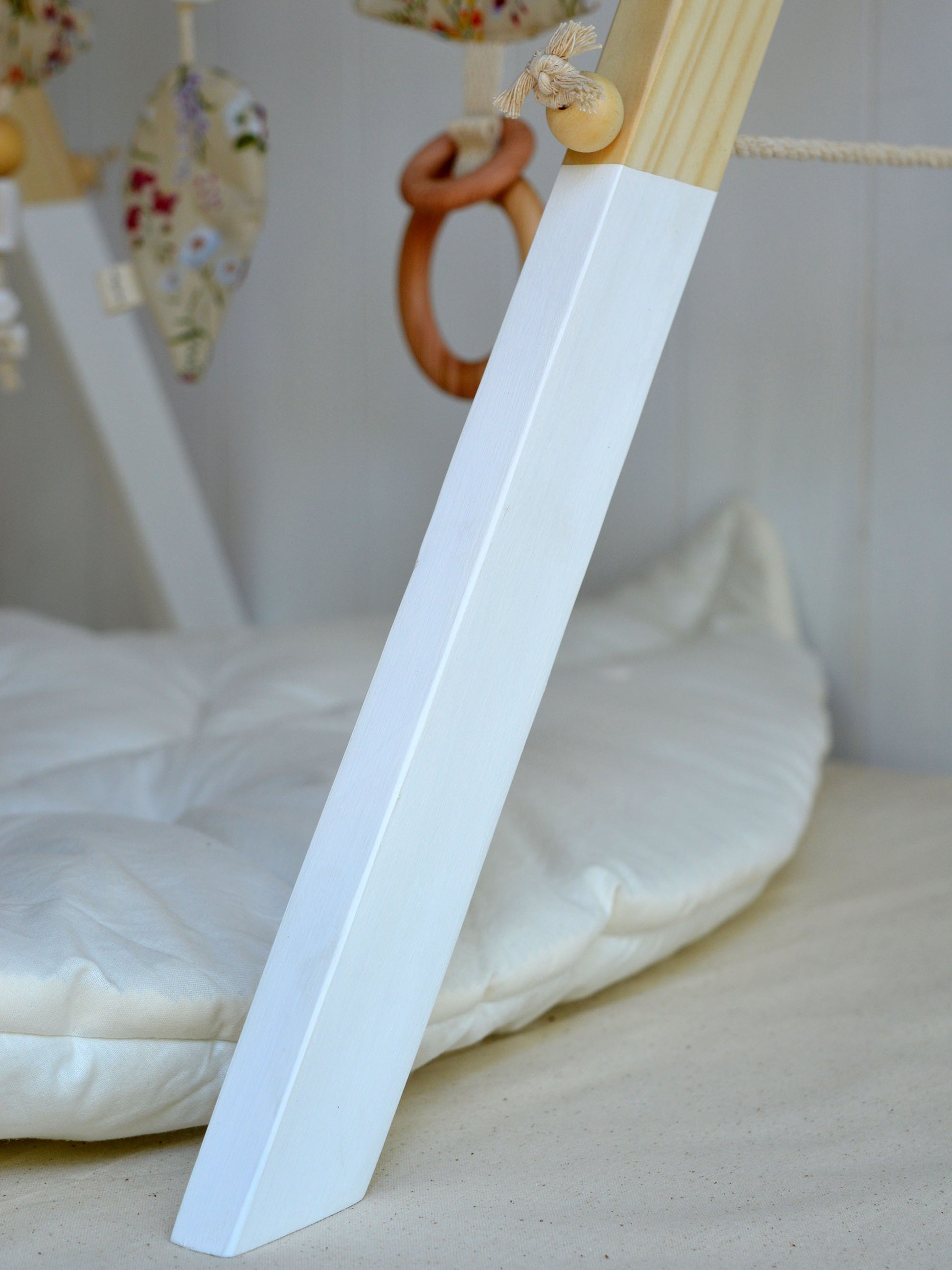 El set de móviles es de madera nativa trabajada a mano, firme, liviana y con un sonidito suave de madera cuando se mueven las piezas. Todo pensado para acompañar sus primeros meses con calma, simpleza y estímulos naturales.