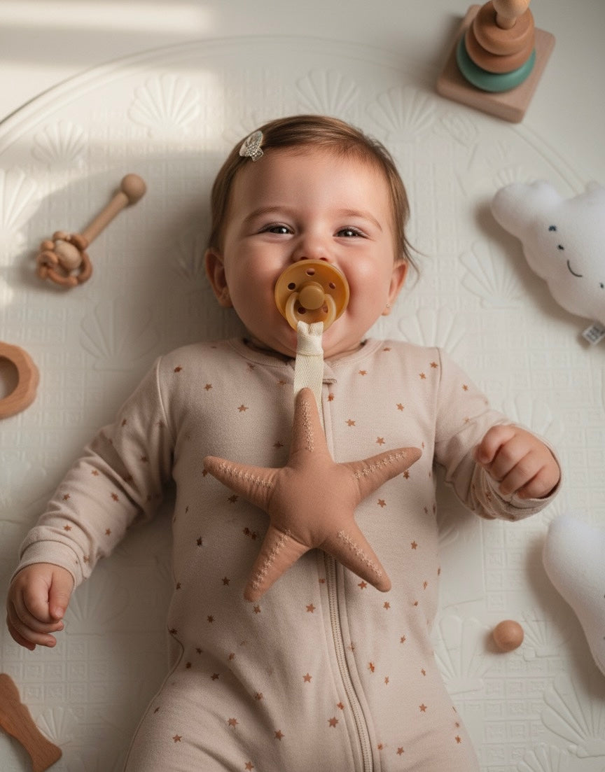 Son blanditos, suaves y seguros para acompañarlos en su cuna o colecho, sin riesgo de incomodidad ni marcas en su piel. Además de sujetar el tete (¡ese que siempre se pierde!), también pueden ser su primer objeto de apego.
