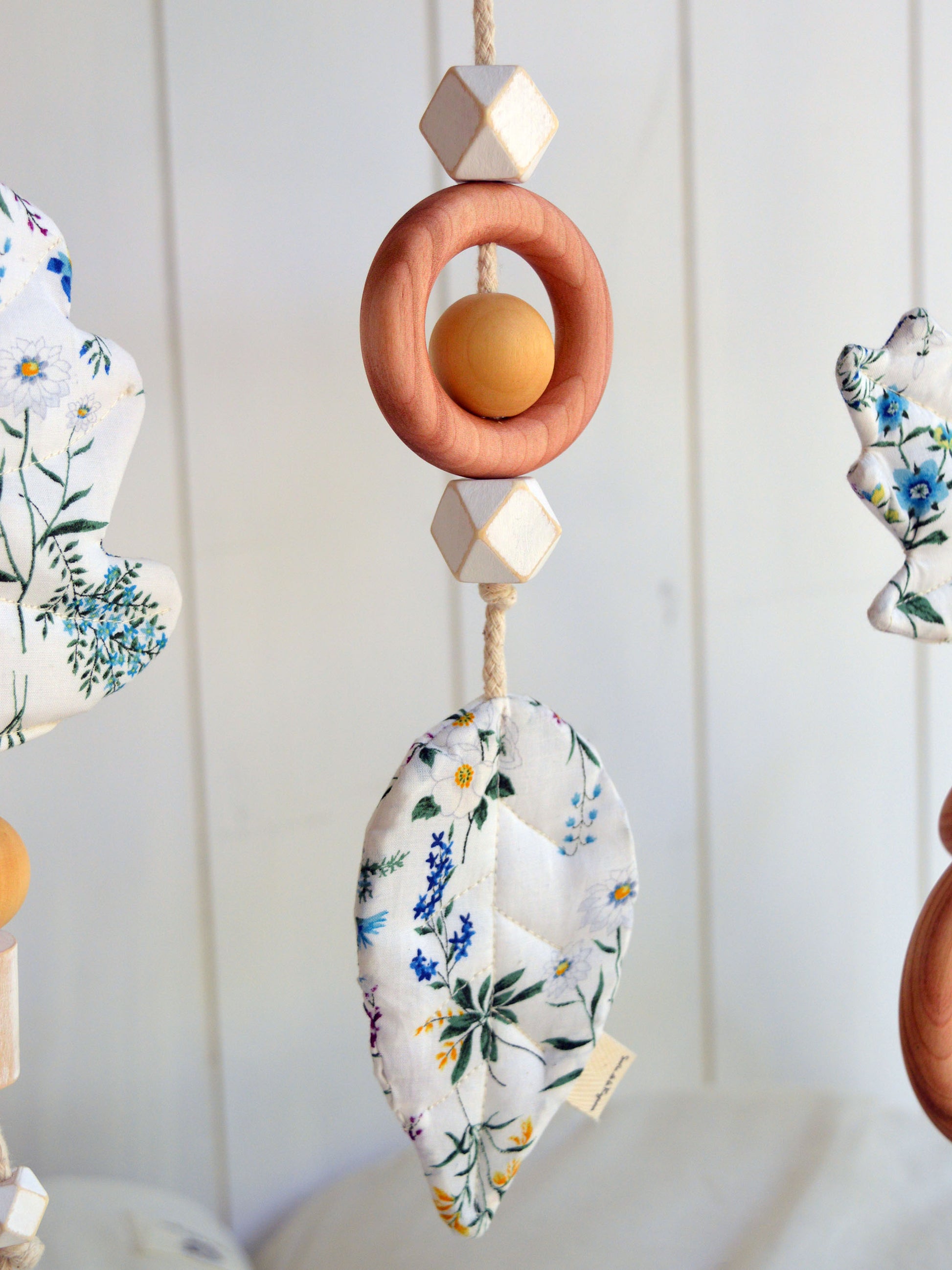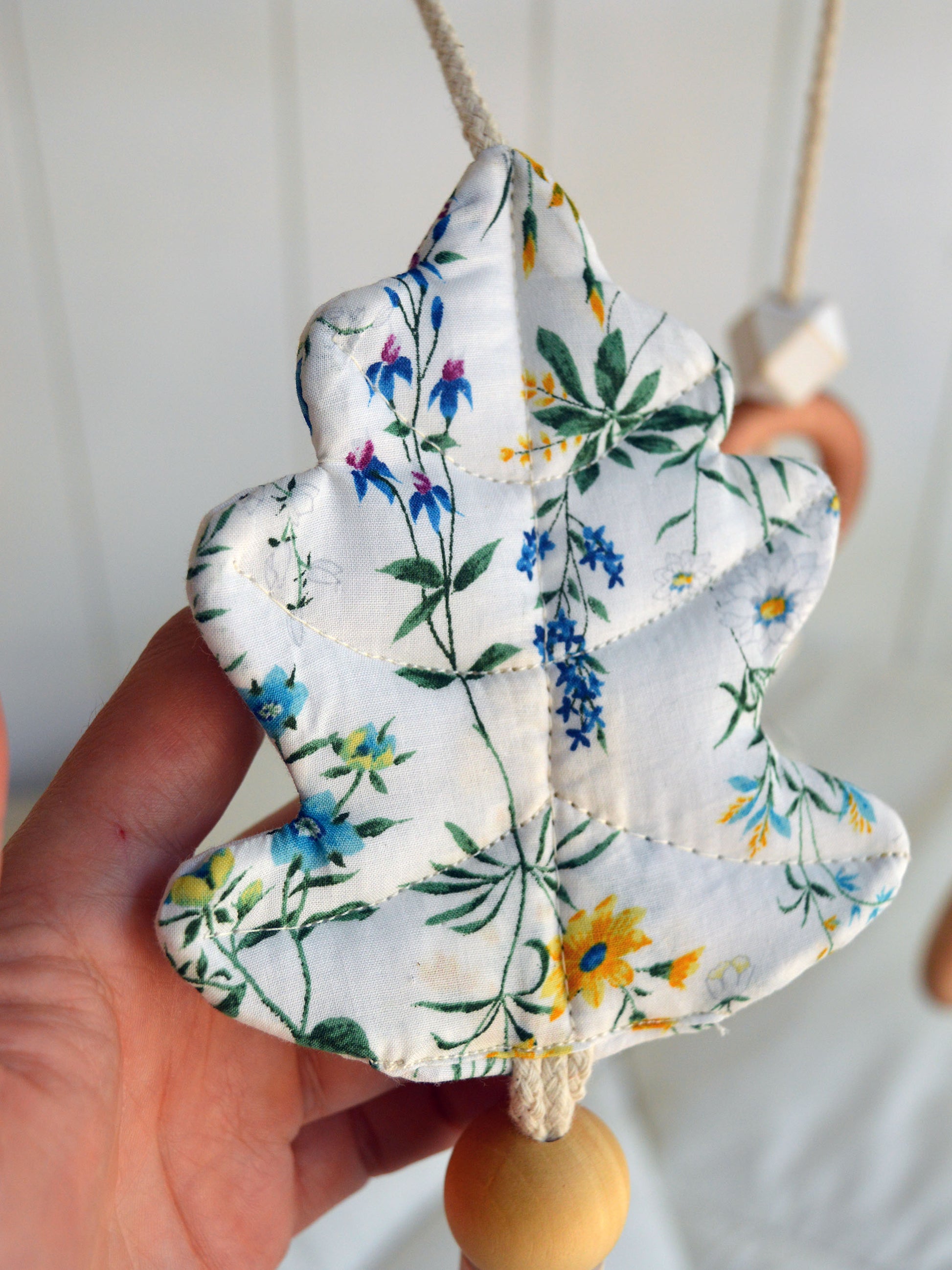El set móviles de hojitas es una belleza: están hechas 100% en algodón japonés, ese algodón suave, delicado y de una calidad increíble (de verdad, nada que ver con las telas normales). Y lo más novedoso: ¡crujen!