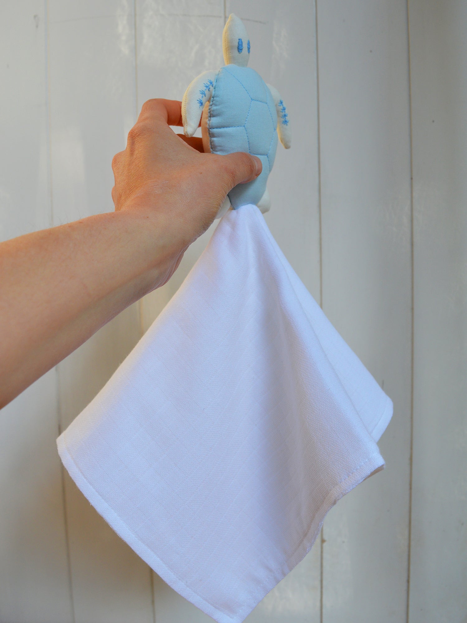 Por eso los hice en muselina 100% algodón: una tela ultra suave, hipoalergénica y transpirable. Esto no solo los acompaña con delicadeza en cada momento, sino que también les da seguridad, porque si tu guagua apoya el tuto en su carita puede seguir respirando con tranquilidad.